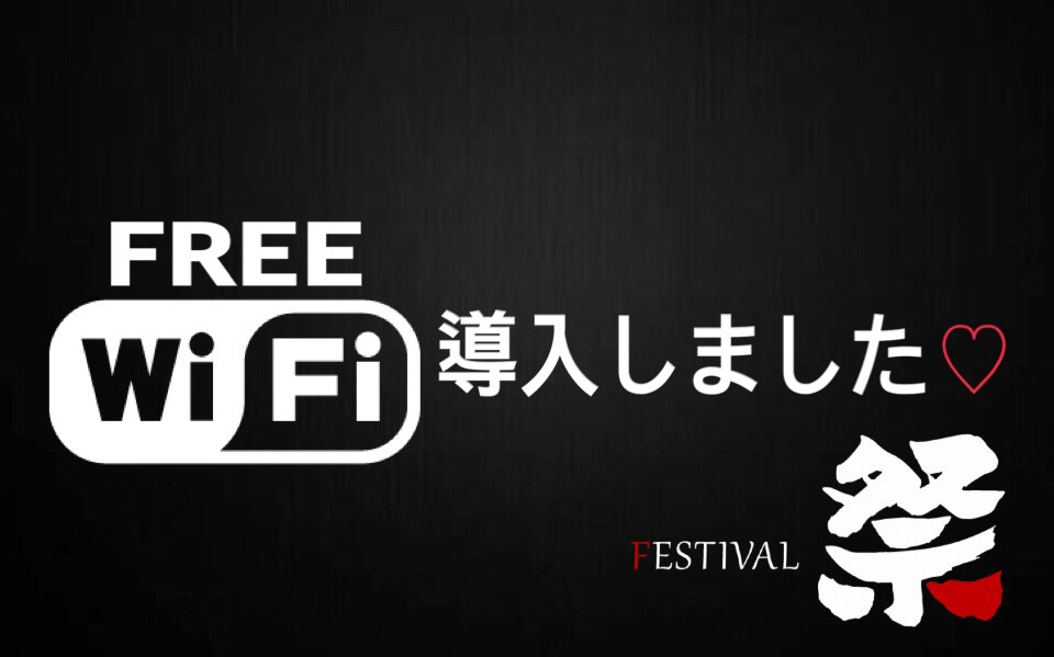 投稿日: 2018年2月3日Wi-Fi導入! オッハー!!!!!!!!!!! 祭 Festivalです🤪💫💫💫 月初からたくさんのご来店ありがとうございます😊❤️ 本当に楽しんでもらえて嬉しい限りです🎉🎉 さてさて!本日より遂に!!👏👏 自由に使えるWi-Fiを導入しました〜❣️💡 Wi-Fiに繋いでゲームするもよし、動画見るもよし👀 心の拠り所 Festival、皆さまのギガもお守りします 笑 ということで👀❣️ 本日も0時よりオープンしておりますので、 皆さまのご来店お待ちしてまっっす👏🤣
